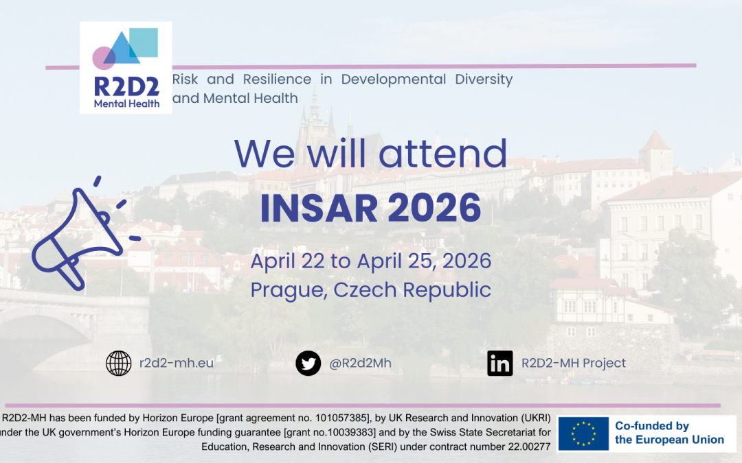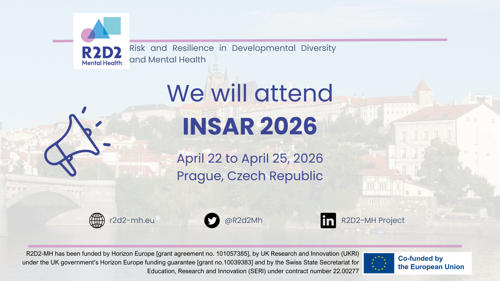 Several R2D2-MH consortium and cocreation members will attend the INSAR 2026 annual meeting that will take place on April 22-25 in Prague, Czech Republic. They will present project results in the form of talks and posters, and a panel session on resilience is scheduled, bringing together R2D2-MH researchers and cocreation memebrs as chair and panelists.